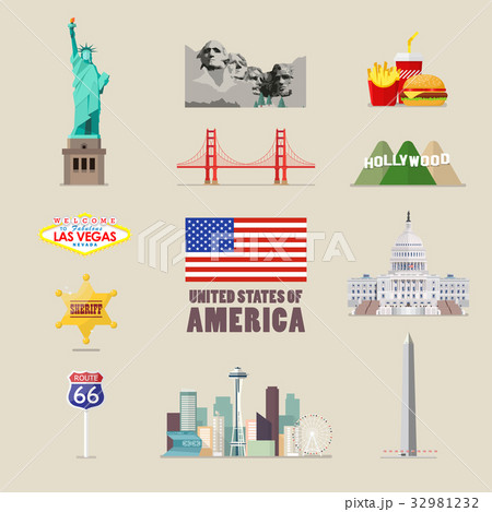 United States travel icon set