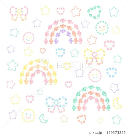 魚を描いたランダムなモチーフのパターン – 背景なし