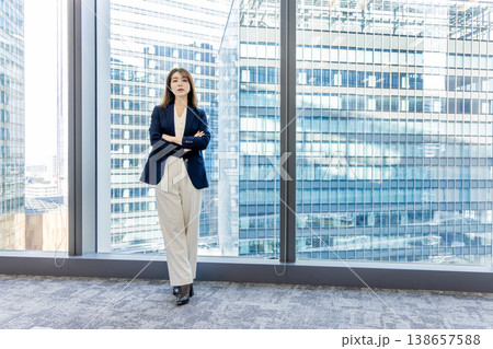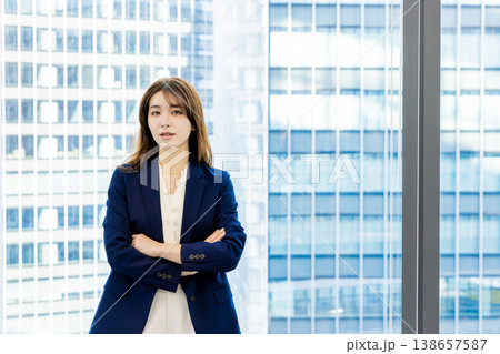 腕組みをするハーフの女性