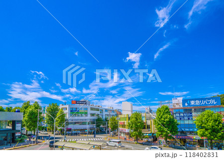 日本の横浜都市景観 あざみ野駅前のルームズ大正堂あざみ野店などを望む