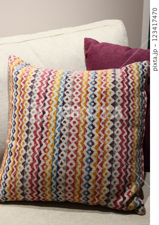 A Colorful Geometric Decorative Pillow Placed Comfortably on a Couch for Style and Comfort