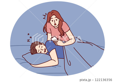 Jealous woman reads SMS in phone of boyfriend sleeping in bed and spies on husband