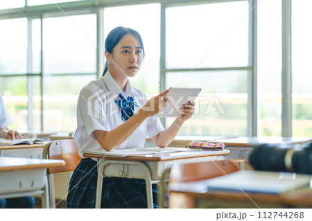 学校の教室で勉強をする高校生