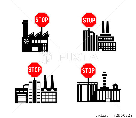 Lockdown forbidden factory vector icon. Prohibited Warning, caution, attention, restriction label danger. actory flat sign design. Factory symbol pictogram.