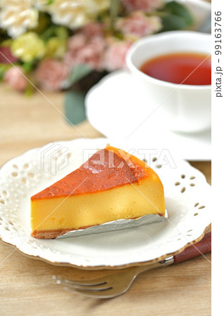 レアチーズケーキと紅茶、洋菓子ケーキデザートのティータイム。