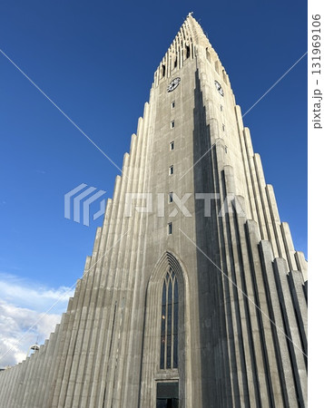 アイスランドの首都のレイキャビクのハットルグリムス教会の塔を下から見上げた風景です。