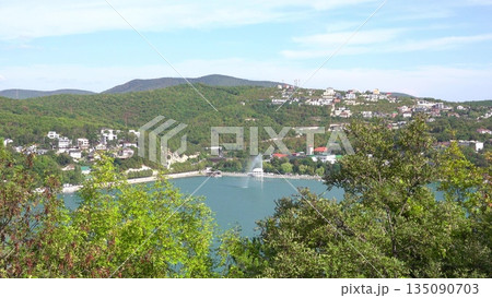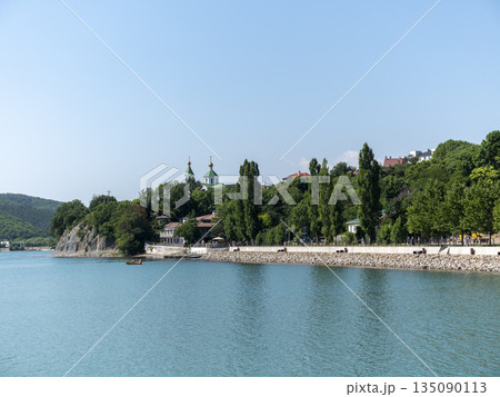 August 19, 2025 The promenade along Lake Abrau-Dyurso with calm water, greenery, and scenic surroundings