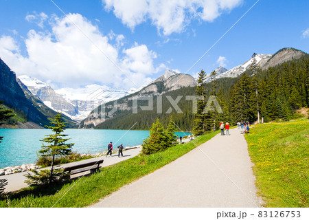 春のカナディアン・ロッキー バンフ国立公園 レイク・ルイーズ湖岸の遊歩道(カナダ)