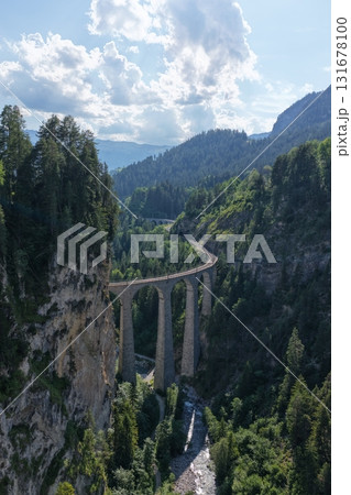 Landwasser viaduct railway bridge curving through swiss alps