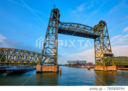 De Hef or Koningshavenbrug railway lift bridge over the Koningshaven in Rotterdam