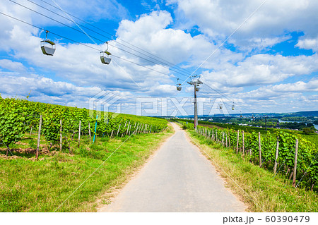 View of Bingen am Rhein from Rudesheim vineyards in the Rhine Valley, Germany