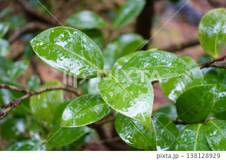 雨に濡れた葉