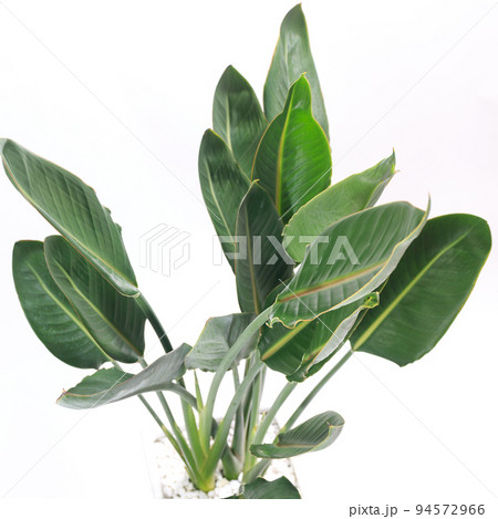 観葉植物、ストレリチア・レギネ(極楽鳥花)の鉢植え【白背景】