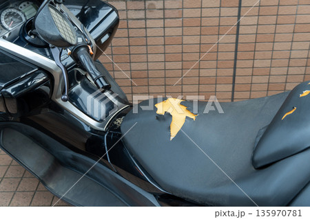スクーターバイクの破れたシート - 劣化した座面のクローズアップ