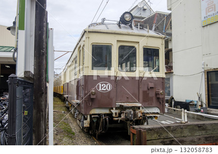 近代化産業遺産に指定され動態保存されている高松琴平電鉄120号(1000形)電車(仏生山駅)