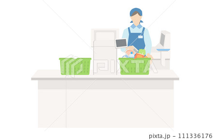 スーパーマーケットのレジで働く女性のイラスト