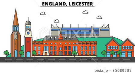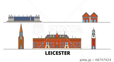 United Kingdom, Leicester flat landmarks vector illustration. United Kingdom, Leicester line city