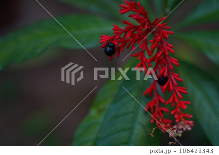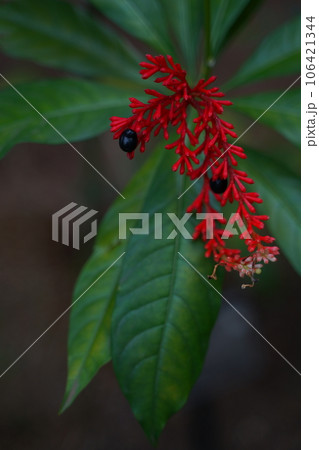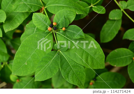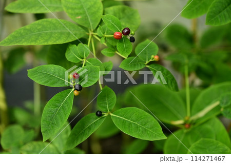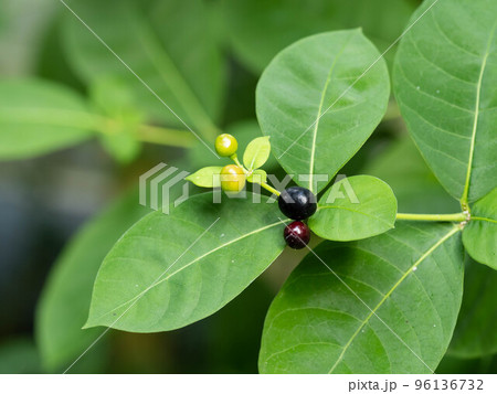 インドジャボク、薬草、血圧、インド、民間薬、レセルピン、鎮痛剤、赤い、実、花、 植物、緑、野外、日本