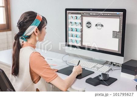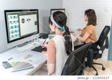 写真編集・画像編集・写真加工・レタッチャー・グラフィックデザイナーの仕事をする女性