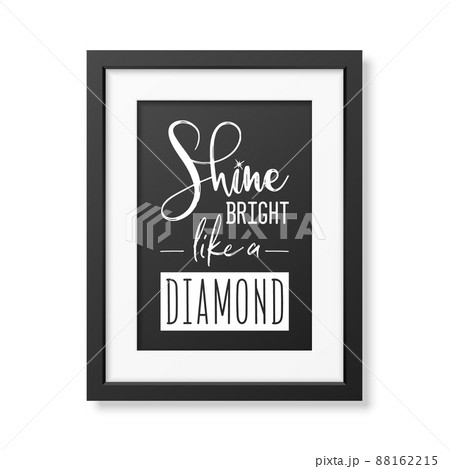 Shine Bright Like a Diamond. Vector Typographic Quote with Simple Modern Black Frame Isolated. Gemstone, Diamond, Sparkle, Jewerly Concept. Motivational Inspirational Poster, Typography, Lettering
