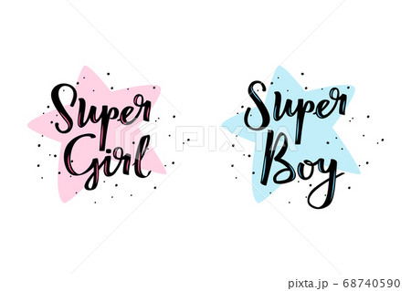 Super Girl and Super Boy calligraphic banners. Handwritten words.