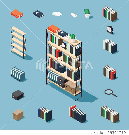 Isometric bookcase and elements