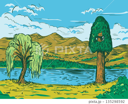 Redwood National and State Parks. Redwood National and State Parks hand drawn watercolor illustration