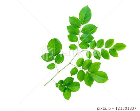 Cut out Pterocarpus Macrocarpus or Burma padauk leaves with clipping paths on white background