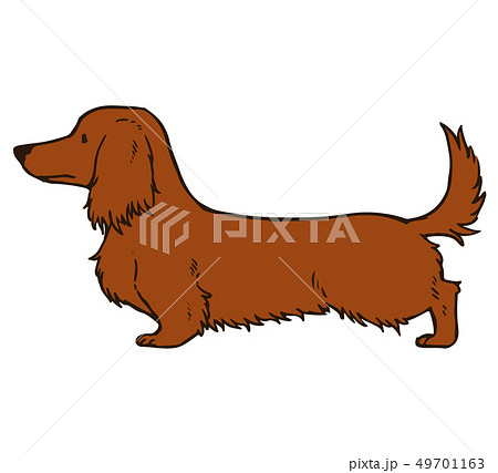 レッドカラーのダックスフンドのイラスト ロングヘア 主線あり