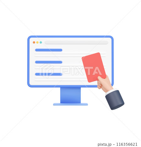 笛を吹きながらレッドカードを出すビジネスパーソンのイメージイラスト