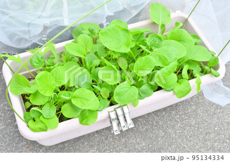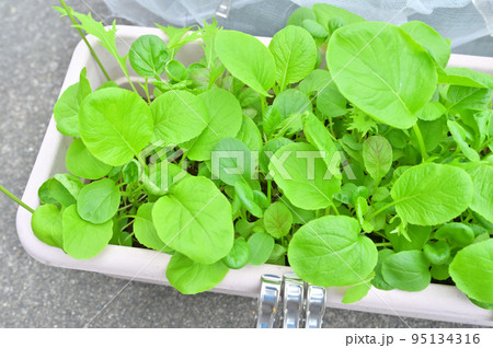 家庭菜園、屋外ガーデニング、野菜栽培のベビーリーフ。発芽、いろいろ。
