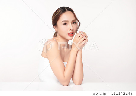 Beautiful young asian woman with clean fresh skin on white background, Face care, Facial treatment, Cosmetology, beauty and spa, Asian women portrait.