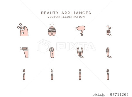 アイソメトリック図法で描いた家庭用電気製品のイラストセット12[美容・健康家電]