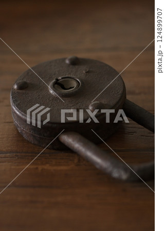 堅牢な背景素材・日本の伝統的な蔵の錠前・縦位置