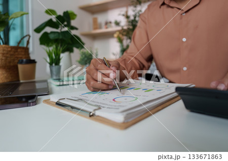 Financial Review. Individual analyzing data charts in a stylish workspace.