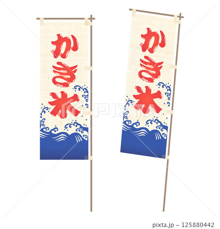 かき氷と旗のイラスト シンプル かわいい 夏 カキ氷 夏祭り 氷 食べ物 デザート お祭り
