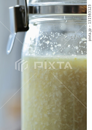 材料を混ぜたばかりで泡が出始めた自家製レモン塩麹