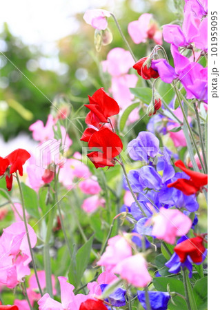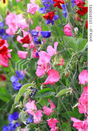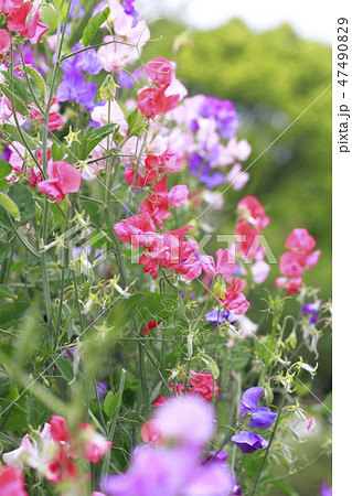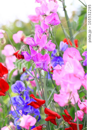 花畑のカラフルなスイートピー