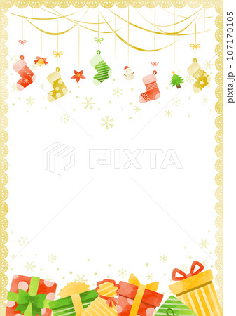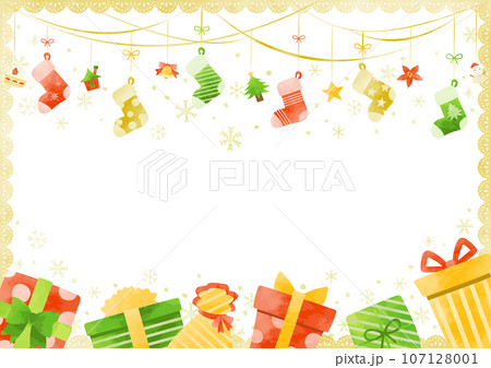クリスマスプレゼントと靴下のフレーム