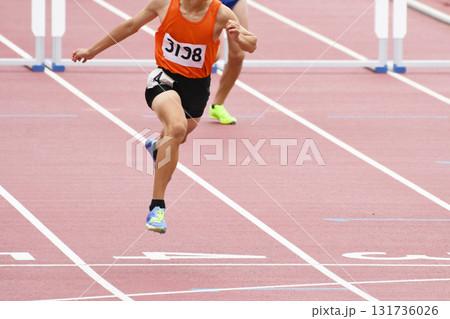 ハードルを越えフィニッシュする選手