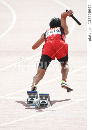 トラックを走る陸上選手