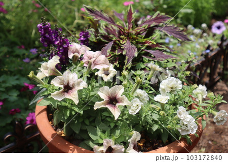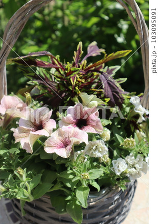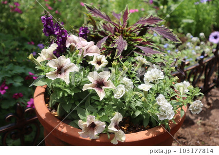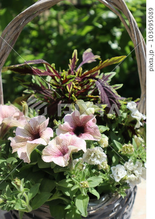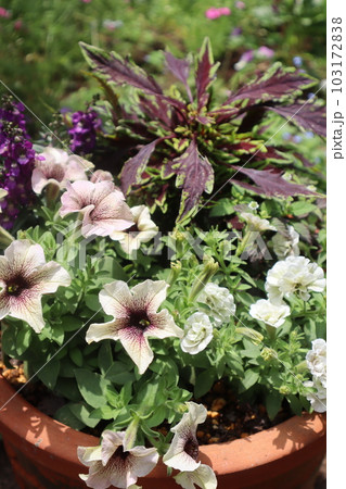 ペチュニア、コリウスの花の寄せ植え