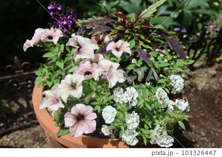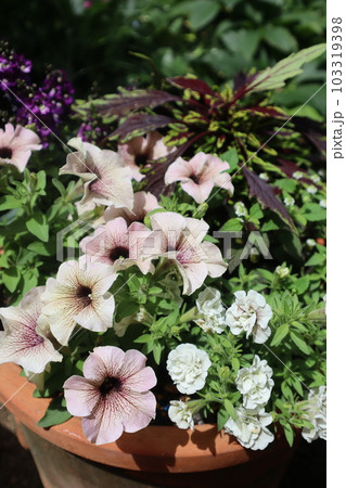 おしゃれなペチュニアの花寄せ植え