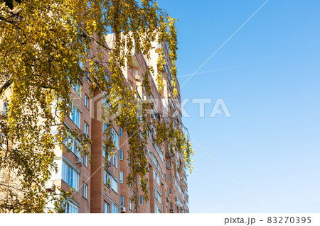yellow leaves and high-rise apartment house