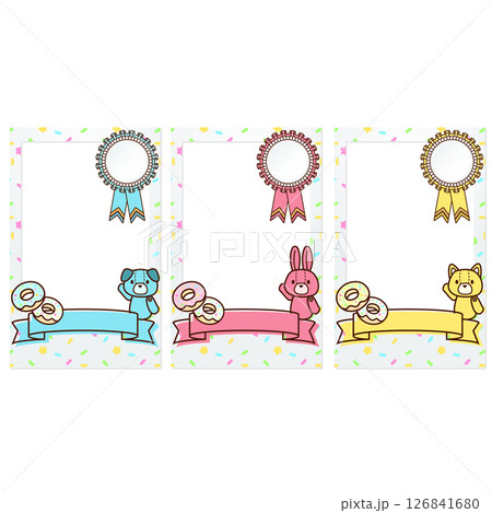 可愛いチェキ デコレーション フレーム リボン ピンク シアン イエロー
