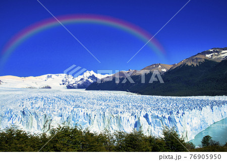 パタゴニア地方の美しい氷河にかかる虹