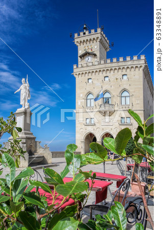 Republic San Marino Prima Torre Guaita first fortress tower with brick walls on Mount Titano stone rock