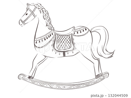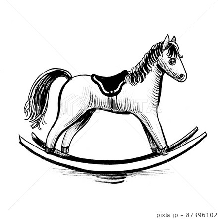 Rocking horse toy. Ink black and white draiwng