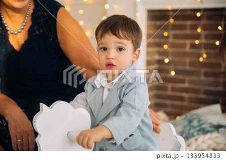 Little boy on rocking horse