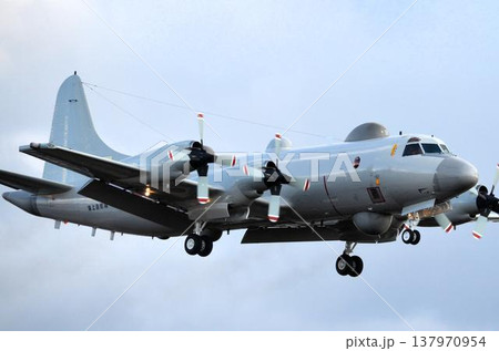 那覇空港に待機中の海上自衛隊のP-3C オライオン(Orion)哨戒機